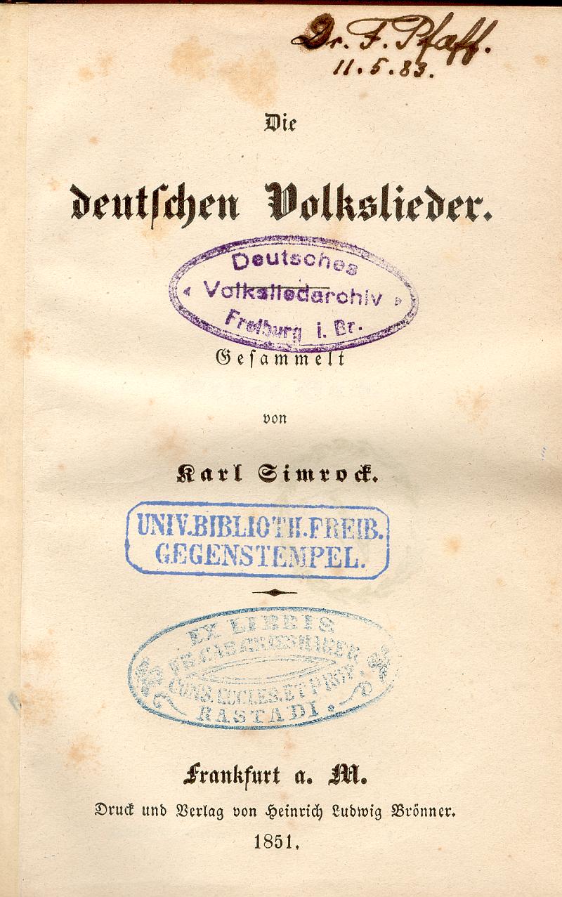 Edition B: Erstdruck des Liedtextes 1851